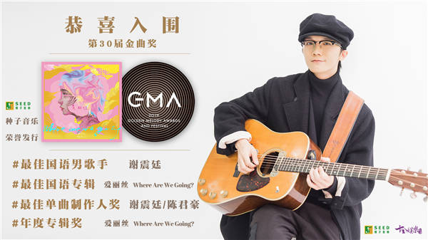昨日,万众期待的2019年第30届金曲奖入围名单终于揭晓,在22279件参赛作品中,种子音乐旗下艺人谢震廷风光入围最佳国语男歌手、年度专辑、最佳国语专辑、最佳单曲制作人等四项大奖。